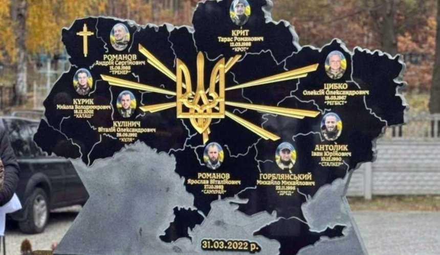 Пам’ятний знак встановили на честь восьми військових із добровольчого розвідувального батальйону «Сонечко», які загинули 31 березня 2022 року.