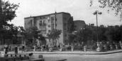 На місці сучасного готелю «Театральний» до війни знаходився готель «Інтурист», а на місці, де тепер драматичний театр ім. В. Магара, на поч. 20 ст. – відділення Азово-Донського банку, на базі якого у 1931 був відкрито театр ім. М. Заньковецької (його будівля зруйнована під час Другої світової війни). Навпроти театру – Театральна площа. У будинку, де тепер розміщуються аптека та низка магазинів (1950), знаходився кінотеатр «Лотос», а вгору по вулиці Тургенєва – кіноілюзіон «Чари». По правому боці проспекту до вул. Леппіка (колишня Дніпровська), яка його перетинає, збереглися два прибуткові будинки кін. 19 ст., що є пам’ятками архітектури.