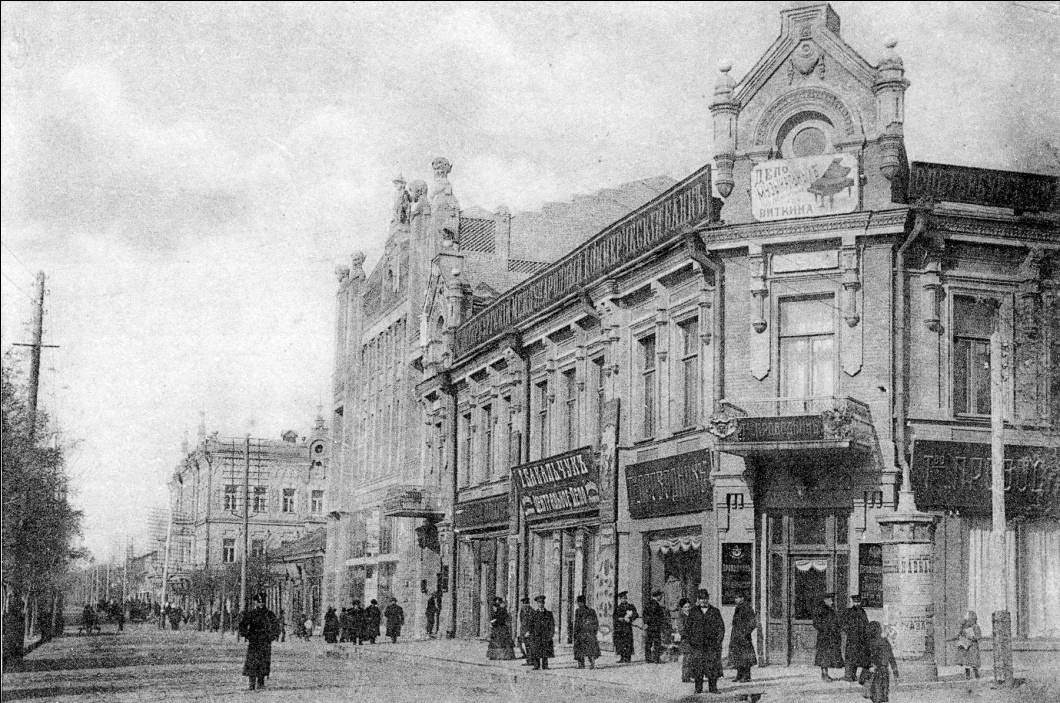 Праворуч – будинок Санкт-Петербурзького міжнародного комерційного банку. За ним в центрі кадру – прибутковий будинок О. А. Ланшина. Джерело: Матеріали до багатотомного «Зводу пам’яток історії та культури України»: Запорізька область. – К.: 2016 р., , с. 146-2.