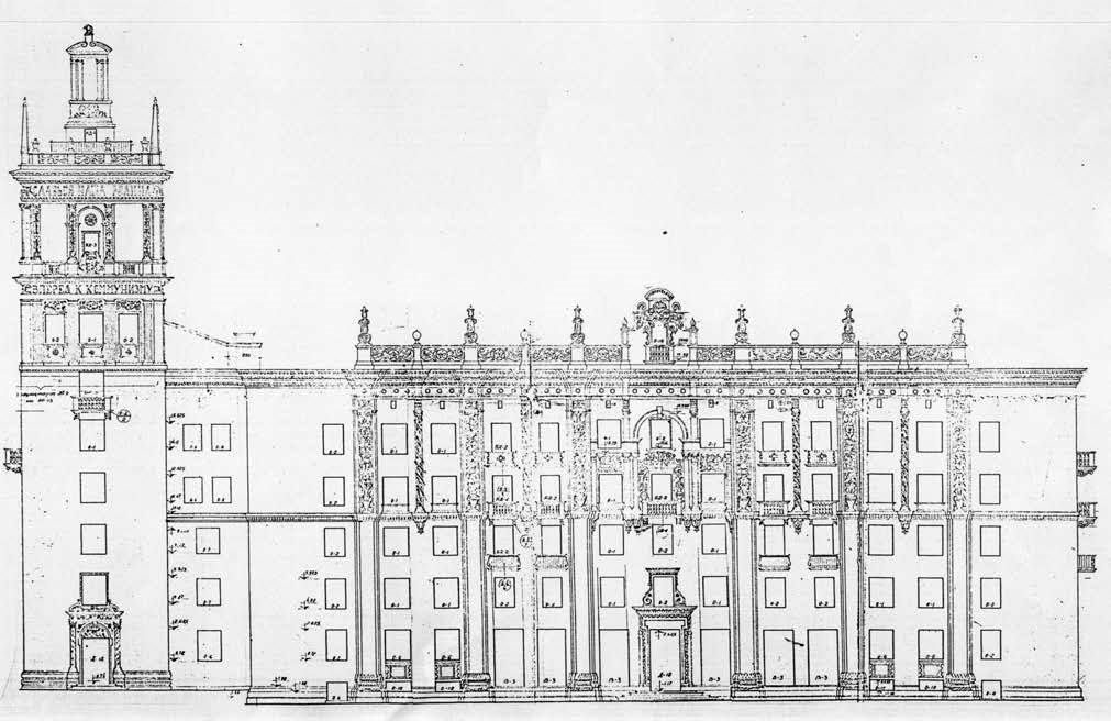 1952 р. Проект фасаду будинку № 193Розмір зображення: 1011:656 піксел Джерело: Матеріали до багатотомного «Зводу пам’яток історії та культури України»: Запорізька область. – К.: 2016 р., , с. 234-1. |