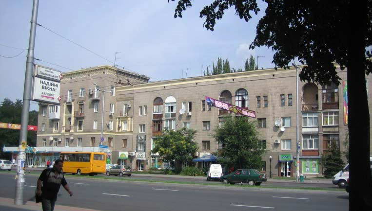 Перші поверхи житлового будинку по просп. Соборному, 224 нині перебудовані під приватні магазини, перукарський салон і кафе.