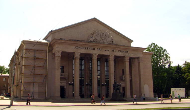 Кіноконцертний зал ім. М. І. Глінки (Запорізька обласна філармонія), 1953 (архіт.). Просп. Соборний, 183. У північно-східній частині сучасного Запоріжжя, в межах нового міського центру, що почав формуватися в 1930-х рр. Становить архітектурну домінанту на проспекті між вулицями Добролюбова і Трегубенка.