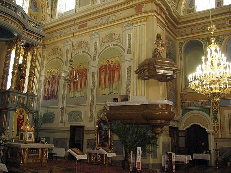 2012 р. Бічна стіна вівтаря і кафедра проповідникаРозмір зображення: 800:600 піксел Фото Зенона Боровця і Богдана Тхора, 1 вересня 2012 р. |