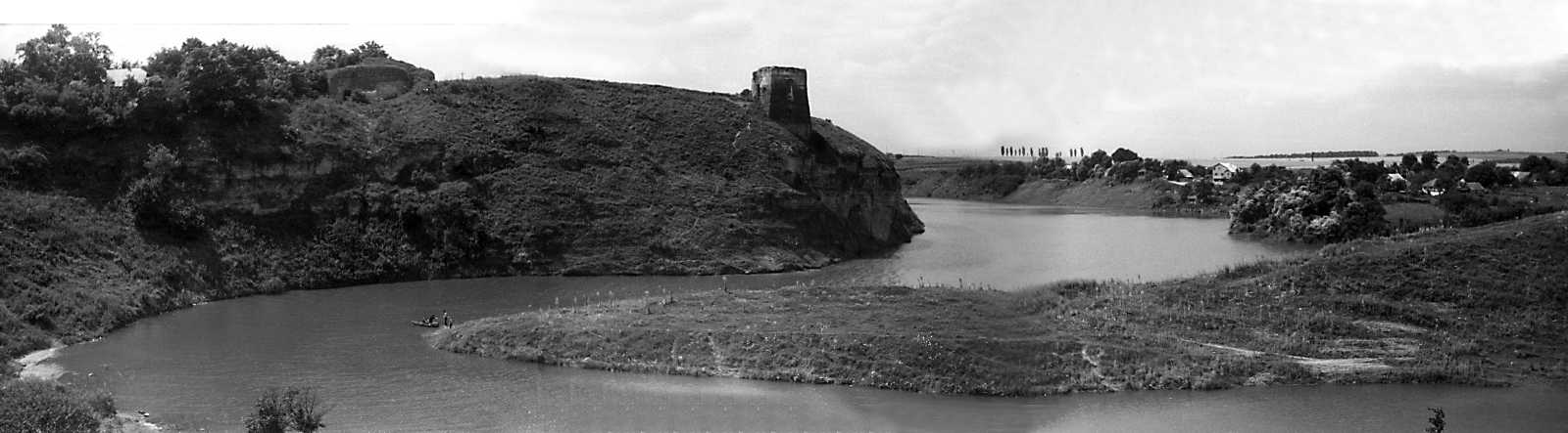1991 р. Панорама замку і р. Кармелітанка зі сходуРозмір зображення: 1600:443 піксел 1991 р. 23 липня. Фото М.І.Жарких. Негатека, № 698-02+4. |