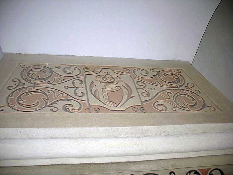 Гербова композиція на даху камінаРозмір зображення: 800:600 піксел Фото Зенона Боровця і Богдана Тхора, 29 листопада 2008 р. |