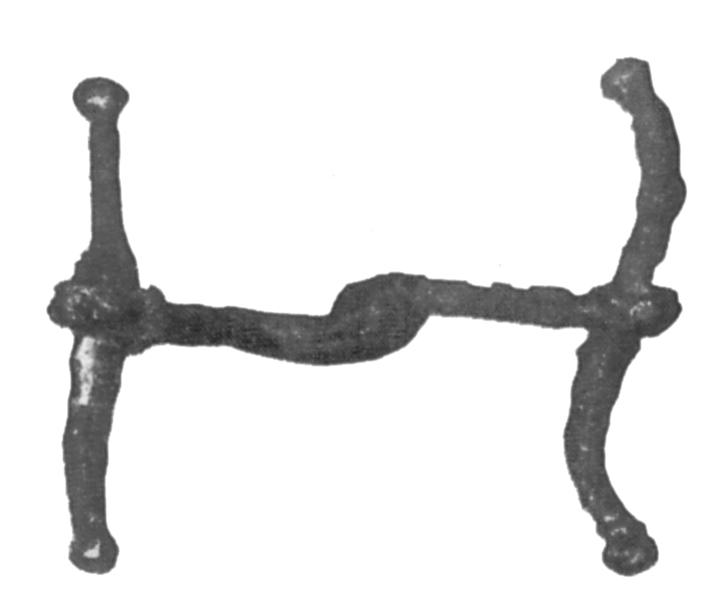Псалии и удила изготовлены из тонкого железного прута, круглого в сечении. На концах псалий имеются серебряные круглые шишечки. Удила состоят из двух стержней, концы которых загнуты в петли и охватывают среднюю часть псалиев.