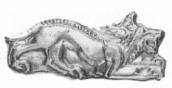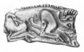 Золото. Розміри деталей: кабан 8.5: 4.5 см; собака 9.3: 3.4 см, пантера 6.3: 3.3 см, олень 4: 3.1 см.
