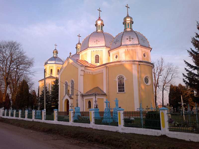 Найдавніші відомості про церкву походять з 1563 р. Теперішня, мурована, збудована на місці давнішої дерев’яної у 1897 р. Це хрещата в плані, з укороченими боковими раменами, триверха церква. її восьмибічні барабани нави бабинця та вівтаря вкриті банями, увінчаними ліхтарями з маківками. По другій світовій війні весь час чинна.