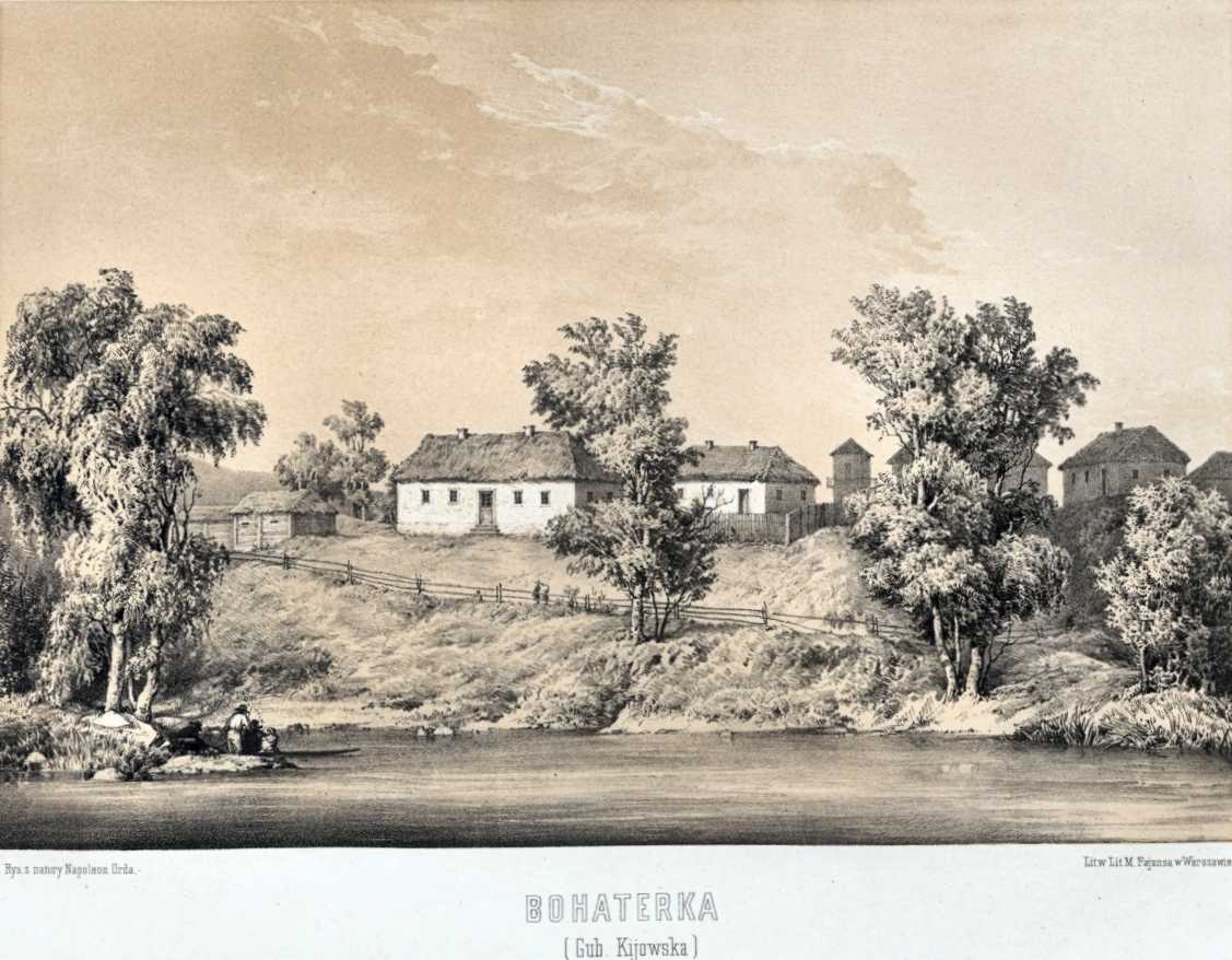 [1875 р.] Краєвид у селіРозмір зображення: 1127:878 піксел Скан літографії: Orda N. Album widokow historycznych Polski (1873 – 1883), Seria 2, № (1875) |