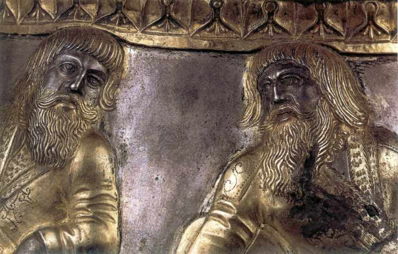 Голови вождів (5 - 6)Розмір зображення: 800:512 піксел Джерело: Gold der Steppe: Archaeologie der Ukraine. – Schleswig: 1991, S. 375. |