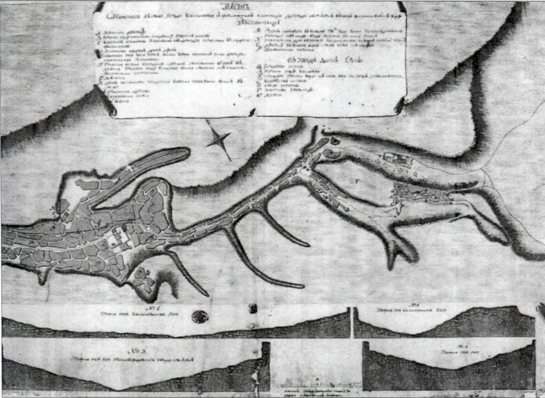 Карта та профілі Бахчисарайської долини. З книги П. І. Сумарокова «Досуги крымского судьи или Второе путешествие в Тавриду» (1803 р.) [Ибрагимова А. И. Бахчисарайский ханский дворец 16 – 18 вв. – К.: 2015 г., c. 45, рис. 21].