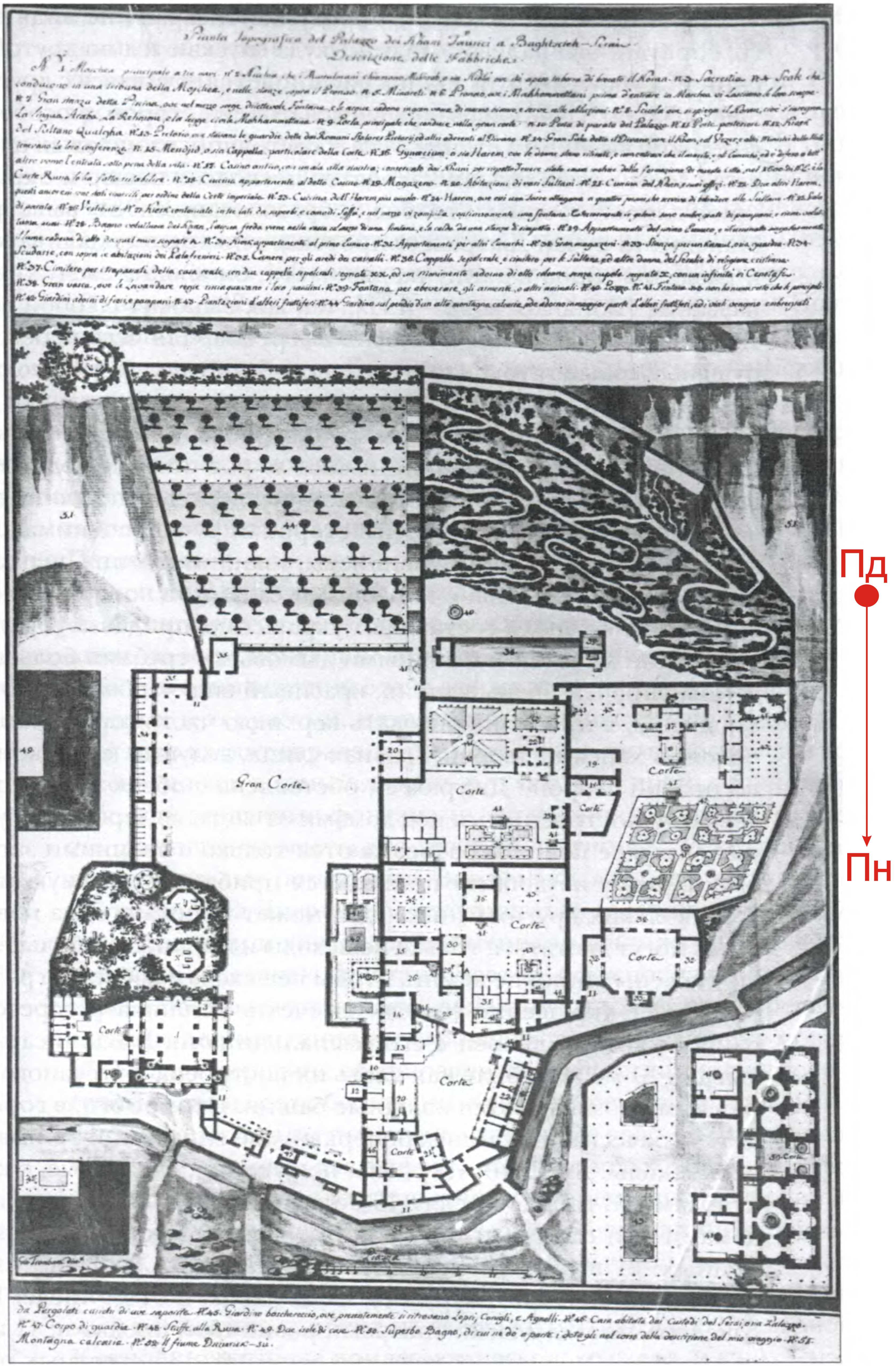 План першого поверху Дж. тромбаро, 1787 р. [Ибрагимова А. И. Бахчисарайский ханский дворец 16 – 18 вв. – К.: 2015 г., c. 27, рис. 9].