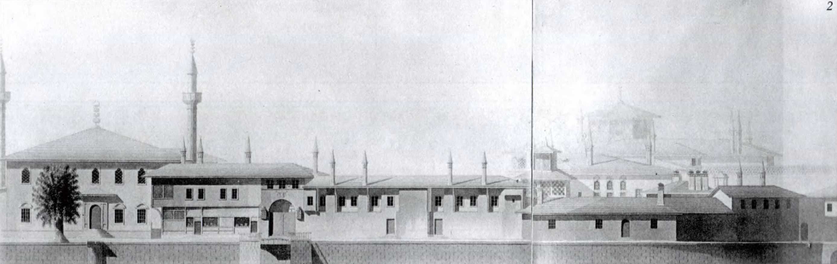 1798 р. Північний фасад, проект реставраціїРозмір зображення: 2775:875 піксел Розгортка північного фасаду, проект реставрації В. Гесте, 1798 р. [Ибрагимова А. И. Бахчисарайский ханский дворец 16 – 18 вв. – К.: 2015 г., c. 37, рис. 15-2]. |