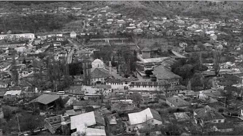 2012 р. Загальний вигляд з півночіРозмір зображення: 800:448 піксел Фото А. Ібрагімової, 2012 р. [Ибрагимова А. И. Бахчисарайский ханский дворец 16 – 18 вв. – К.: 2015 г., c. 98, рис. 68]. |