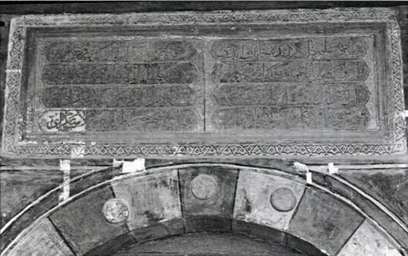 Напис (2) над головним входомРозмір зображення: 800:503 піксел Фото А. Ібрагімової, 2013 р. [Ибрагимова А. И. Бахчисарайский ханский дворец 16 – 18 вв. – К.: 2015 г., c. 107, рис. 83]. |