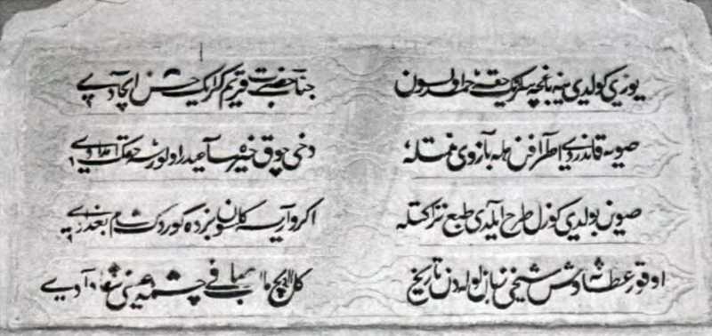 Верхній написРозмір зображення: 800:378 піксел Фото А. Ібрагімової, 2013 р. [Ибрагимова А. И. Бахчисарайский ханский дворец 16 – 18 вв. – К.: 2015 г., c. 121, рис. 114]. |