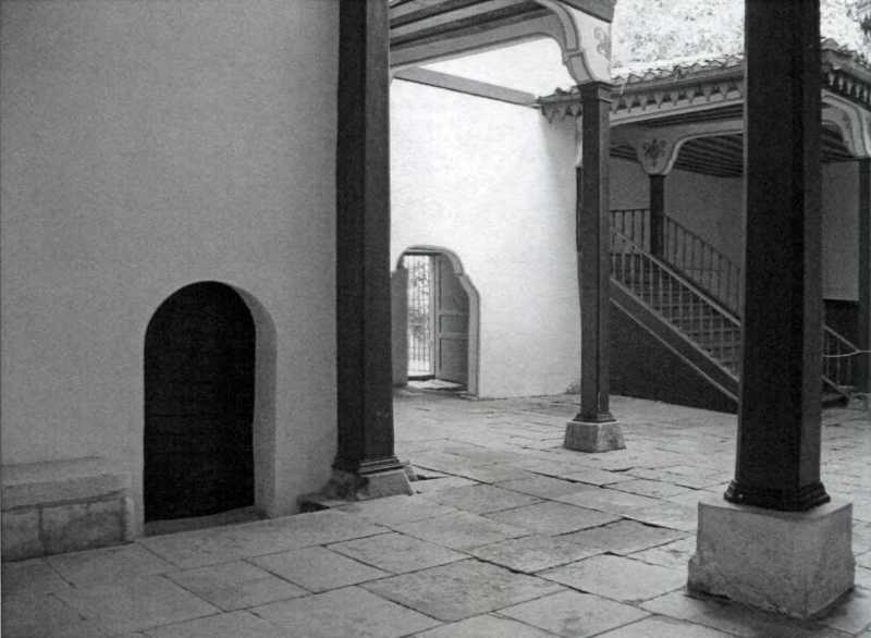 Зліва направо: вхід до скарбниці, двері у Гаремний двір, сходи на 2-й поверх. Фото А. Ібрагімової, 2013 р. [Ибрагимова А. И. Бахчисарайский ханский дворец 16 – 18 вв. – К.: 2015 г., c. 122, рис. 116].