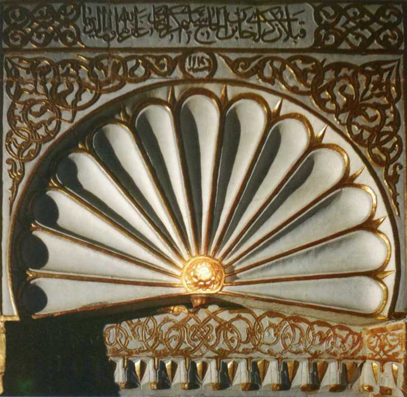 Напис і декоративна розеткаРозмір зображення: 800:779 піксел Фото О. Гайворонського, 2012 р. Він вважає, що тут маємо стилізоване зображення павича із розпущеним хвостом. [Гайворонський О. Країна Крим. – К.: Майстер книг, 2017 р., c. 132] |