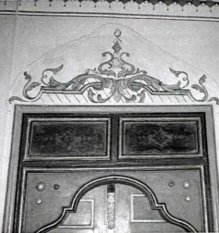 2013 р. Розпис над дверима «ханської спальні»Розмір зображення: 752:800 піксел Фото А. Ібрагімової, 2013 р. [Ибрагимова А. И. Бахчисарайский ханский дворец 16 – 18 вв. – К.: 2015 г., c. 146, рис. 151]. |