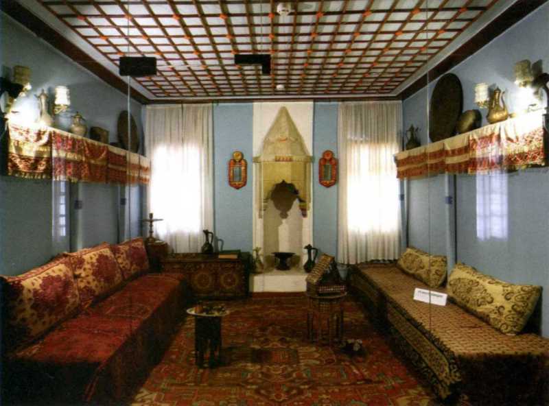 Музейна експодиція традиційного кримсько-татарського інтер’єру у кімнаті корпусу почту. Фото О. Гайворонського, 2013 р. [Гайворонський О. Країна Крим. – К.: Майстер книг, 2017 р., c. 166]
