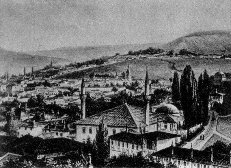 В центрі переднього плану – Велика мечеть, праворуч – корпус при брамі і брама. Вдалині (цікаво) – якась церква.