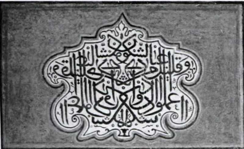 Напис, виконаний майстром Омером у 1763 р.: «Вони створили прекрасні будівлі, скульптури, миски, подібні до водойм, та нерухомі котли. О рід Давида! Працюйте на знак вдячності. Але серед Моїх рабів мало вдячних». (Коран, сура «Саба», аят 13).