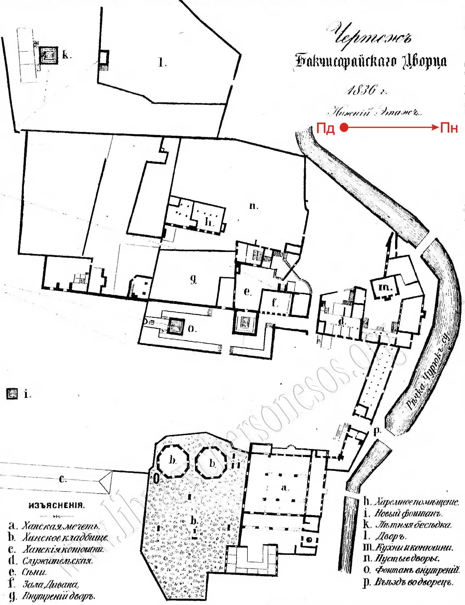 1836 р. План першого поверхуРозмір зображення: 1836:2389 піксел Записки Одесского общества истории и древностей, 1881 г., т. 12, с. 490. |