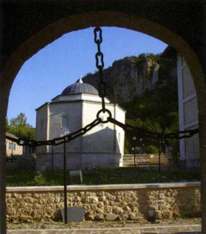 Вид на дюрбе Хаджі-Гірея з дверей Зинджирли-медресе. Фото О. Гайворонського, 2009 р. [Гайворонський О. Країна Крим. – К.: Майстер книг, 2017 р., c. 73]