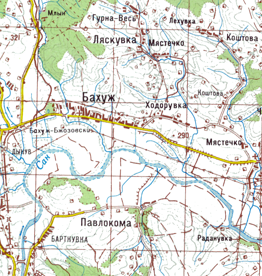 Карта (Бахуж)Розмір зображення: 840:884 піксел Карта Київської військово-картографічної фабрики, масштаб 1:100000, аркуш 88, друк 2000 р. (за матеріалами 2000 р.). |