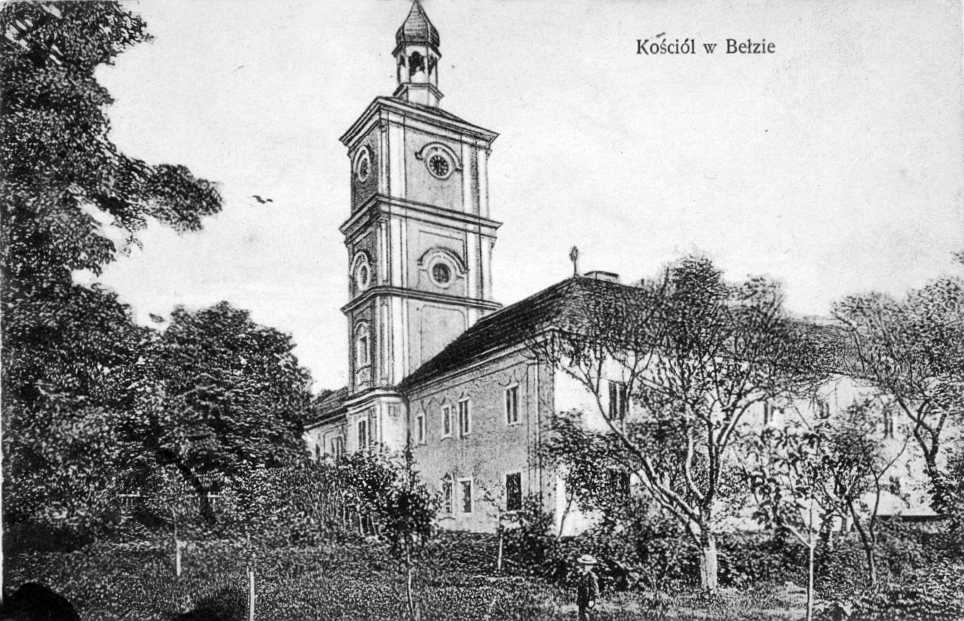 1910 р. (?) Загальний виглядРозмір зображення: 964:621 піксел Поштівка: костел у Белзі. – Kościół w Bełzie. W Bełzie : nakł. J. Erdmana […], [ca 1910] (pocztówka); 8,9 × 13,2 cm Підпис на поштівці помилковий, видно же, що це ратуша. |