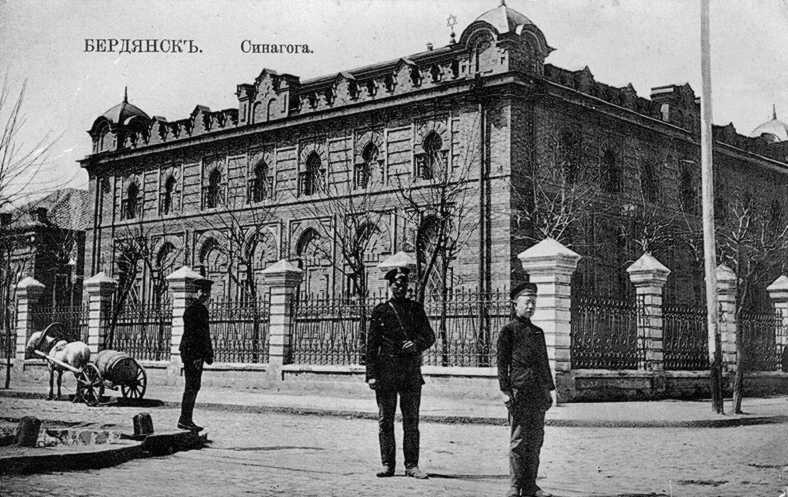 Велика синагогаРозмір зображення: 788:497 піксел Поштівка 1910 р. за фото 1906..1909 рр. з сайту Більше фотографій: . Немає сучасних фото, мабуть зруйнована. |