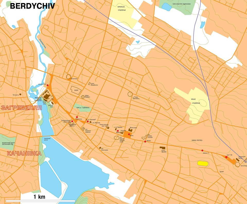 План м. БердичівРозмір зображення: 960:793 піксел Карта накреслена Дмитром Вортманом, опублікована 14.02.2014 р. |