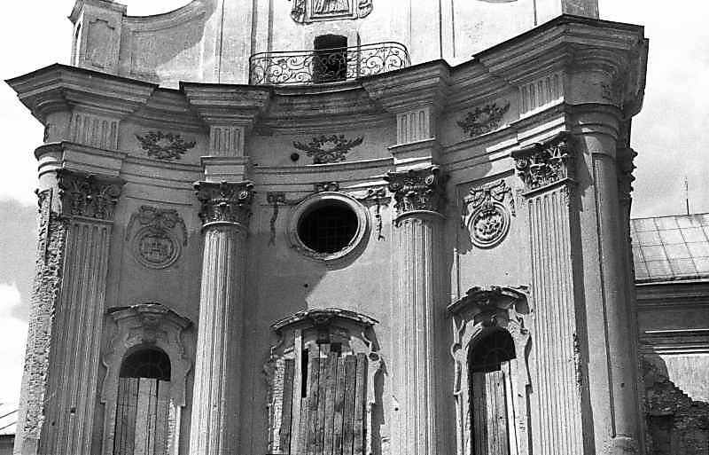 Верхня частина Розмір зображення: 800:513 піксел 1987 р. 16 липня. Фото М.І.Жарких. Негатека, № 348-34. Вкладені елементи Люкарна Антаблемент