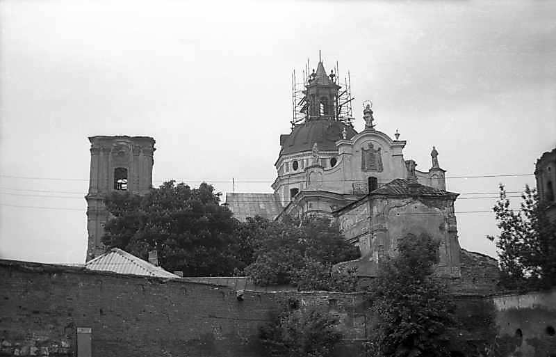 1977 р. Мур, південна дзвіниця, корпус при брамі і костел. Вигляд з південного сходуРозмір зображення: 800:513 піксел 1977 р. 29 травня. Фото М.І.Жарких. Негатека, № A274-30. |