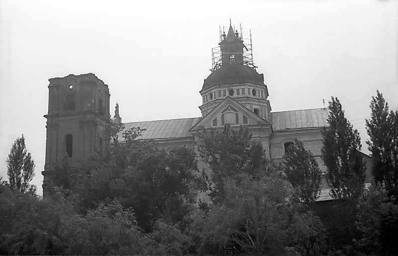 1977 р. Північна дзвіниця і костел. Вигляд з північного сходуРозмір зображення: 800:515 піксел 1977 р. 29 травня. Фото М.І.Жарких. Негатека, № A275-29. |