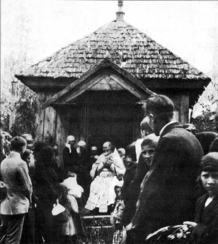 Цвинтарна каплиця, 1903-1908 рр. Фото 1926 р. ЦДІА, ф. 408, оп. 1, спр. 1327, арк. 13. Джерело: Слободян В. Церкви Холмської єпархії. – Львів: Наукове товариство ім. Шевченка, 2005 р., с. 93.