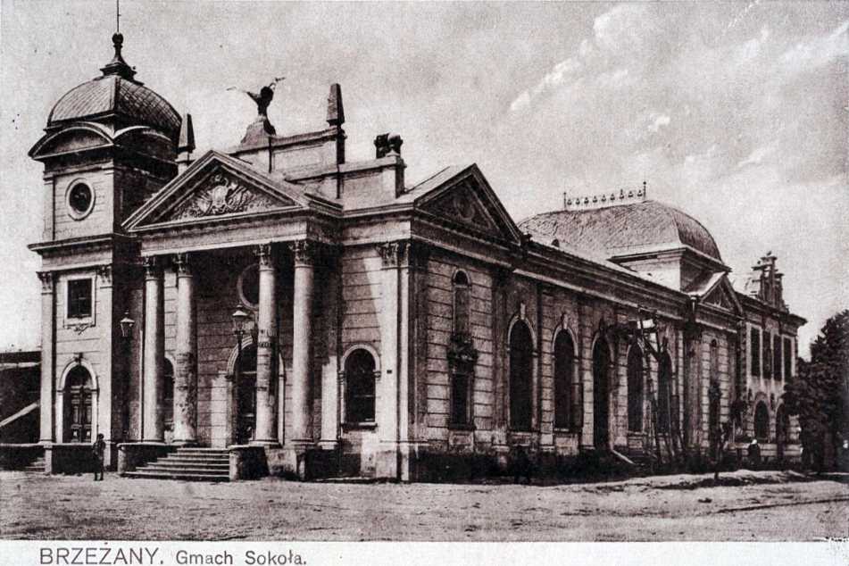 Поштівка: будинок польського спортивного товариства «Сокіл» у Бережанах. – Brzeżany, gmach Sokoła. [S.l.] : wyd. Polskiego Towarzystwa Księgarni kolejowych "RUCH" S. A., [1923-1926] (Kraków : Zakłady Reprodukcyjne "Akropol") (pocztówka); 9 × 13 cm