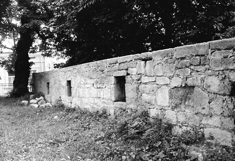 1991 р. Фрагмент східного боку огорожі. Вигляд з південного заходуРозмір зображення: 800:547 піксел 1991 р. 19 серпня. Фото М.І.Жарких. Негатека, № 729-22. |
