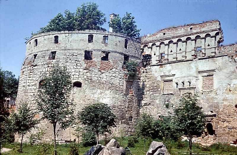 1977 р. Башта 9 і фрагмент прясла 10. Вигляд з південного сходуРозмір зображення: 800:524 піксел 1977 р. 25 липня. Фото М.І.Жарких. Слайдотека. |