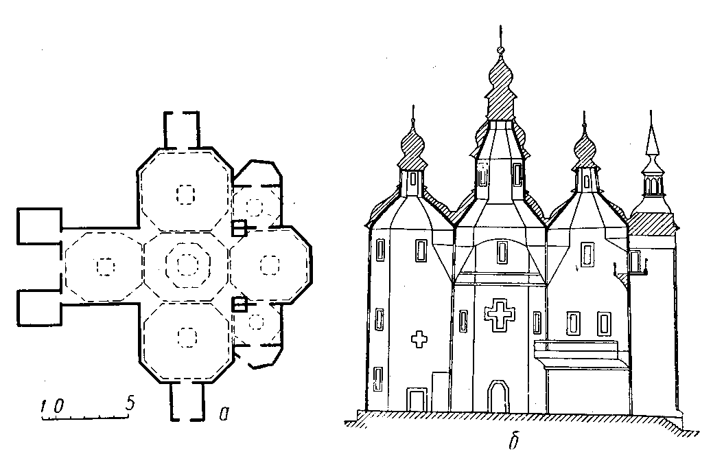 Панас Шолудько. Церква у м. Березна Чернігівської обл., 1761 р.: а – план; б – розріз.