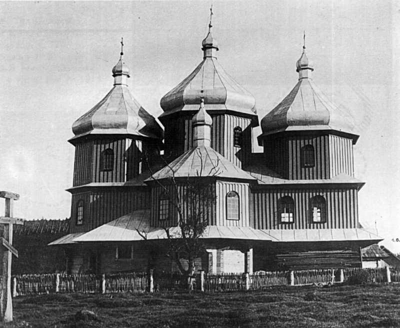 Вперше згадується в документах 1589 р. Попередня дерев’яна церква, збудована у 1779 р. розташовувалася над самим Сяном, на його лівому березі в теперішній приграничній смузі (ця частина села тепер не існує). Це була тризрубна триверха будівля бойківського типу, пірамідальні верхи якої мали над навою чотири заломи, а над вівтарем і бабинцем по два. У 1909 р. поряд з нею збудували нову дерев’яну церкву, хрещату в плані з трьома восьмериками, увінчаними наметовими банями з ліхтарями і маківками. Знищена по другій світовій війні.