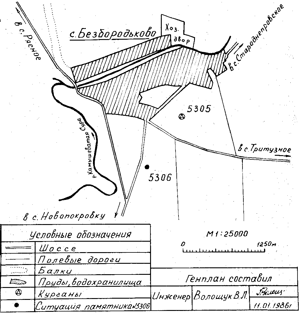 1. Курган сер. І тис. до н.е. Схематичний генплан розташування.