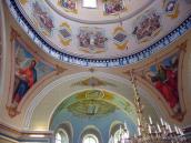 Інтер’єриРозмір зображення: 2592:1944 піксел Інтер’єр верху із зображенням новозавітної трійці. В простінках барабану – сцени з життя Христа. Фото Зенона Боровця і Богдана Тхора, 10 серпня 2006 р. |