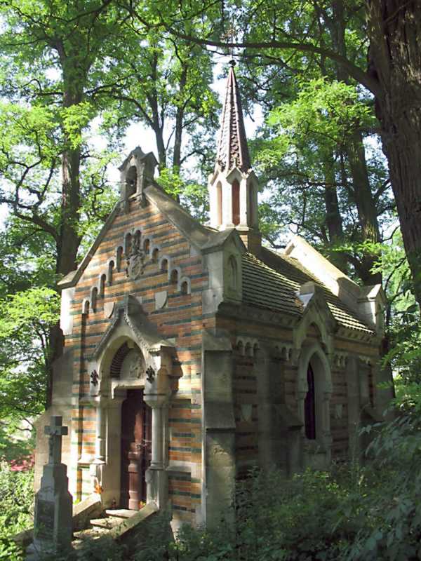 Гробовець родини ЧайковськихРозмір зображення: 600:800 піксел Фото Зенона Боровця і Богдана Тхора, 8 серпня 2008 р. Ця каплиця була збудована Генрихом Чайковським в 1894 р. і освячена в 1896 р. Вона знаходиться на бібрському цвинтарі. |