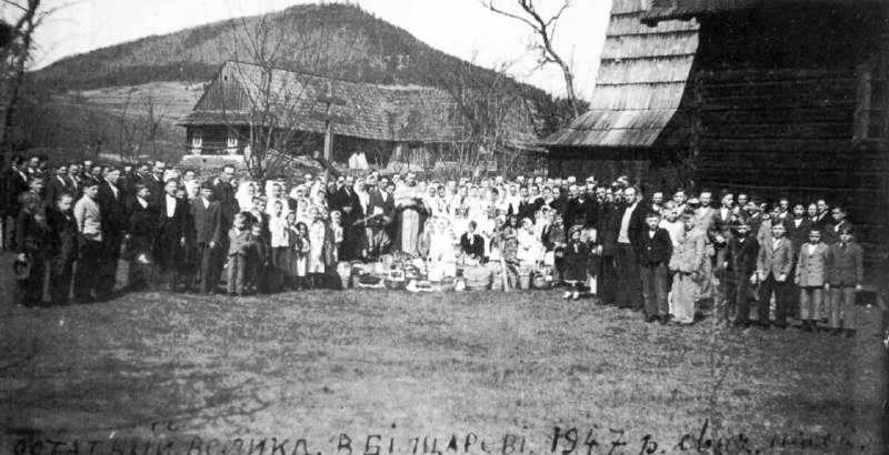 1947 р. Остання Велика ніч перед виселеннямРозмір зображення: 800:410 піксел Bilczarewa – ostatnia Wielkanoc w rodzinnej wsi. – 1947 rok. Zdjęcie nadesłał Walter Maksimovich Джерело: |