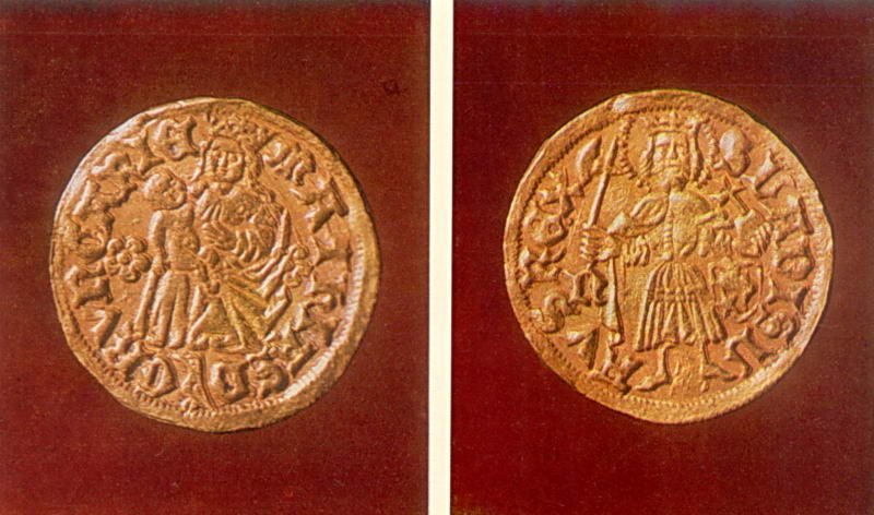 На лицевой стороне монеты изображена сидящая богоматерь, на оборотной – святой Владислав. Венгерские дукаты с XV по конец XVII в. имели хождение в Русском государстве.