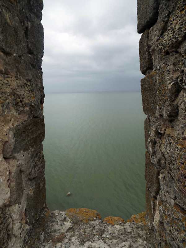 Вид на лиман крізь бійницю північного муруРозмір зображення: 600:800 піксел Фото Івана Парнікози, 20 червня 2021 р. |