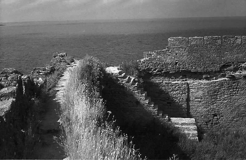 1984 р. Західна ділянка середнього муру та фрагмент північного муру на тлі лиману. Вигляд зі…