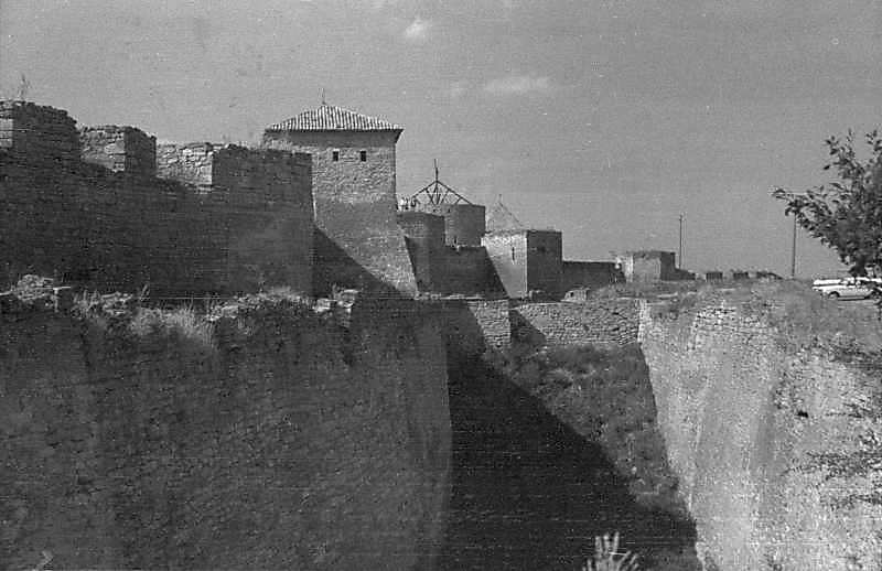 1984 р. Центральна частина східного фронту з баштами 1, 32, 27, 31, 30Розмір зображення: 800:518 піксел Вигляд з південного сходу. 1984 р. 13 вересня. Фото М.І.Жарких. Негатека, № 281-17. |