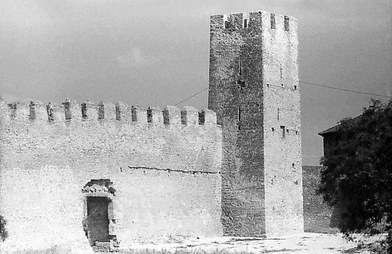 1984 р. Брама 22 та башта 23. Загальний вигляд з південного заходуРозмір зображення: 800:519 піксел 1984 р. 13 вересня. Фото М.І.Жарких. Негатека, № 282-12. |